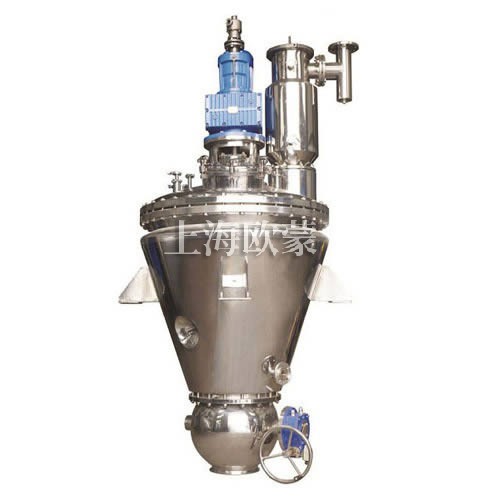 1、OMDZ系列單錐真空螺帶干燥機工作過程為間歇批操作,濕物料進入料倉后,通過筒壁夾套和螺旋槳內部給熱,使給熱面積達到整個容器面積的140%,對物料進行升溫干燥。并選擇相應的錐型干燥混合器型號(工作容積)達到理想的干燥效果。采用上驅式結構的混合干燥機具有高效干燥、混合能力的同時,具有空間充裕,更便于使用者進行檢修維護的特點。